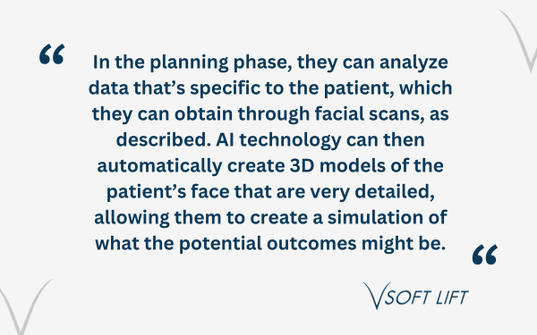 In the planning phase, they can analyze data that’s specific to the patient, which they can obtain through facial scans, as described. AI technology can then automatically create 3D models of the patient’s face that are very detailed, allowing them to create a simulation of what the potential outcomes might be.