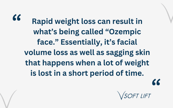 Rapid weight loss can result in what’s being called “Ozempic face.” Essentially, it’s facial volume loss as well as sagging skin that happens when a lot of weight is lost in a short period of time.
